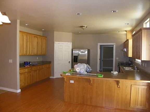 Improvements of $40,000 put into this newer home on 6 usable acres. Beautiful Hickory cabinets in kitchen. Large pantry. Separate dining area with own entry. Stainless appliances. One-half bath in laundry. Huge garage with 10x20 storage space. All improvements done after home was vacated. Additional 4 sheds on property. Property is fenced and cross-fenced, with 7 drive-through gates for easy access. Property extends to the west, east and south side of the home.