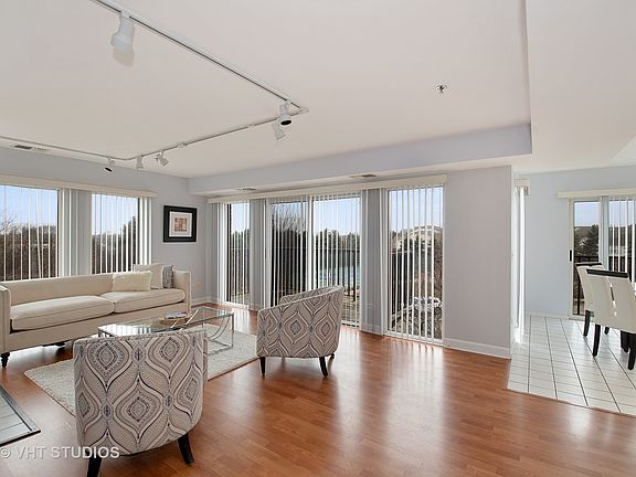 BRIGHT & SPACIOUS TOP FLOOR CORNER UNIT. Open concept Living space. 2 fully enclosed bedrooms with over head fans. In-unit laundry. Master Bedroom with walk-in closet. Skylight. Master Bathroom w/separate shower. Pantry closet. Balcony overlooking tennis court & lush greenery. Indoor heated garage. Storage locker. Clubhouse w/indoor/outdoor pools. Party room, gym. Convenient to train, restaurants, shopping, and vibrant Deerfield. Easy to love. Easy to show.