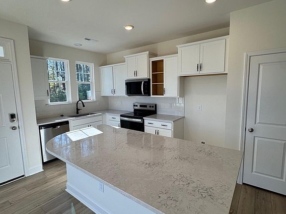 NEW HOME FOR 2025! Gorgeous Low-Maintenance Townhome Community in the Heart of Wendell! This Rochester Townhome is an elevation 3, end unit with stairs on the exterior wall. Luxury Vinyl Plank throughout first floor & wet areas upstairs. Carpet on stairs and living areas upstairs. Open wooden railing on first floor and half wall along stairs on second level. Electric appliance package. Single Bowl undermount sink in kitchen. Quartz counters and White Cabinets throughout. Double bowl raised vanity in bath 2. Tile shower with separate garden tub in primary bath. Fiberglass shower/tub combo in bath 2. Single car rear entry garage and driveway. *Photos updated 12.6.2024*