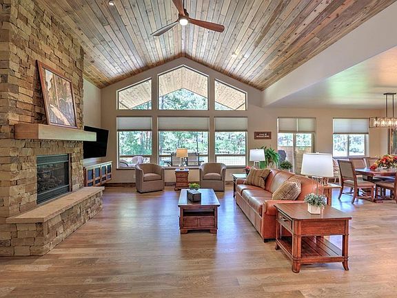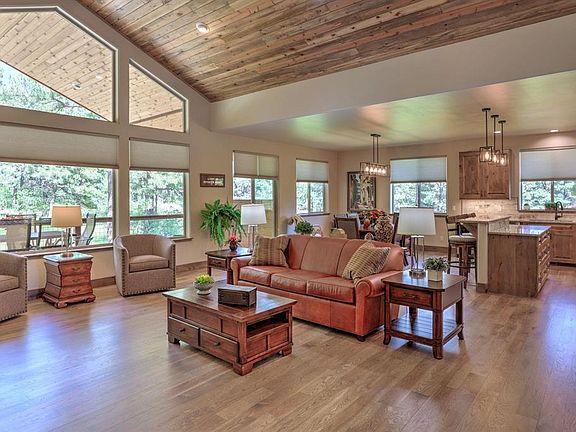 This single level, 3 bedroom custom home, in the gated community of Powder Horn has amenities that prove attention to detail was not lost on the building of this elegant property. As you approach the home, access is via a curving concrete drive with professional and sensible landscaping, complete with dramatic solar landscape lighting and sprinkler system. Upon entering the home, you will be awed by the serene setting. Time to exhale. The Great Room, with ceiling to floor windows, drink in the peaceful setting of mature trees on this 1 acre lot. This home is meant to be shared. Not only is the Great Room set up for entertaining a large group, it has direct access to the covered deck (no snow issues) of almost 400 sq,’. If that is not enough, a lower flagstone patio is available for a closer look at passing wildlife. Some of the amenities include hickory flooring, vaulted, T&G ceiling, stacked stone faced gas fireplace, dining for 6-8, a kitchen bar that seats 3, oven with built-in air fryer, separate beverage refrigerator, huge pantry and built-in custom entertainment center. The primary bedroom has custom lighting, with direct access to the deck area. The bath has a huge walk-in shower with drop down bench, dual vanities and storage galore. The walk-thru closet has direct access to the large laundry room for convenience. There is a powder room off the entry area for access from the Great room, plus 2 additional bedrooms and bath are located on the opposite side of the home for privacy. Then there is the 2.5 car garage. 2.5 you ask? Yes, a third, smaller, full height garage door allows for ease of material unloading for the handy man or a very cool She Shed. This area has windows and extra outlets for a myriad of possibilities. Minutes to all shopping and recreational opportunities, this property is without an equal in quality, location or ambiance. Partially furnished with quality furnishings to start your Pagosa adventure and continue your own style. No comparison. No siree.