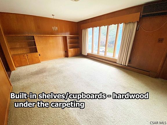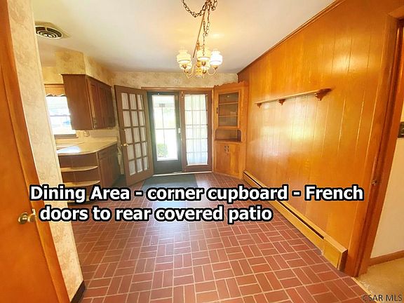 Nice 3 Bedroom brick Ranch in upper Ferndale Borough. Living Room with hardwood under the carpet, coat closet, & built-ins. Dining Area is open to the Kitchen, has a corner cupboard & there are French doors to the covered back porch. Kitchen includes the range, refrigerator, & dishwasher-lots of counter space & cupboards. All 3 Bedrooms have hardwood under the carpet & double lighted closets. Spacious Bath w/a large vanity, 2 medicine cabinets, new toilet, & double linen closet. There are wall A/C units in the Living Room & 1 Bedroom. The Basement has a Family Room, Rec Room, spacious Bathroom, and Laundry with new utility sink. 2 car Detached Garage w/ opener. Relax on the covered back porch - porch swing is included.
