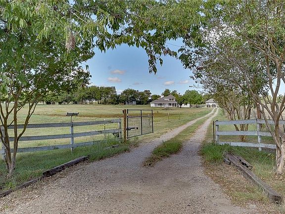 White farm gate frames classic farmhouse sitting on scenic 5 acre lot, complimented by large grassy land that features a pond, pecan trees & pole barn. Covered front porch perfect to take in scenery with access from master & living area. Living room has high ceilings open to lofted room upstairs & antique wood fireplace mantel. Formal dining is off front right of the home with view of yard & tons of light coming in. Kitchen is equipped with new stainless-steel appliances, deco backsplash, island and warm wood cabinetry. The master suite is tucked off back of home for privacy. You will enjoy the master bathroom with walk in shower & jetted tub. Upstairs you'll find loft, 2 bedrooms & full size bath.