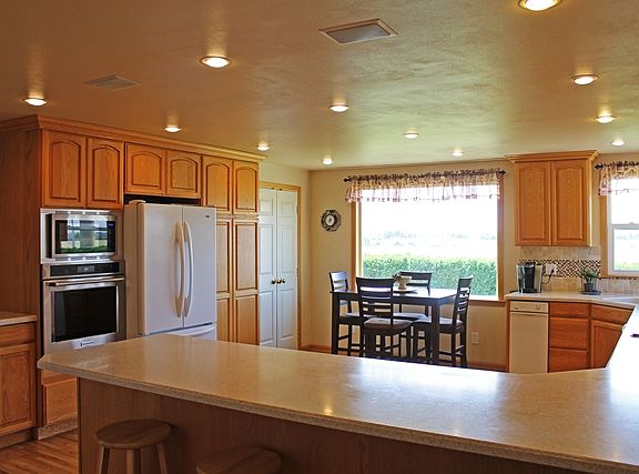 Beautiful mountain views from this spacious well maintained home with shop. Enjoy the amazing large kitchen, wood floors, and custom master suite with private deck and walk-in closet with custom built-ins. Large landscaped yard with Trex deck. Second kitchen off of deck is great for entertaining. Double garage plus 24x32 shop with 200 amp service. RV parking on newly paved drive.