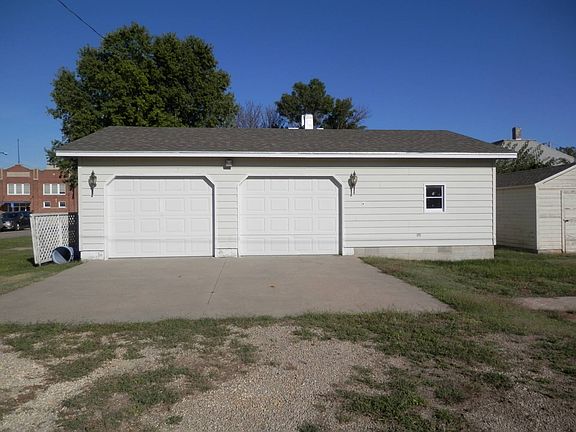 A wrap around porch on the east and north sides of this one and a half story house welcomes visitors and provides a perfect outdoor space during hot weather. It has 4 bedrooms and 2 baths making it an ideal family home. Built in 1920, it has the benefits of solid wood trim (with egg and dart embellishment) in the double living room. They are divided with sliding wood doors. 2 bedrooms, a bathroom, a separate laundry room, and a large kitchen make up the main floor. The kitchen is well designed with wood cabinets and room for a dining table and chairs. Upstairs features 2 large bedrooms and a bathroom. The stairway has a door which can be closed to minimize heating bills. A large open area surrounds the stairway upstairs, providing a gathering space or area for an office or study room. All mechanical items are housed in the unfinished basement. A large breezeway separates the kitchen from the large (36 x 24) garage. There are 2 bays for parking and an additional bay that is set up as a woodworking/metal working shop. An additional 1940 garage is ideal for a small vehicle, garden shed or for additional storage. Alley access and a corner lot are added bonuses.