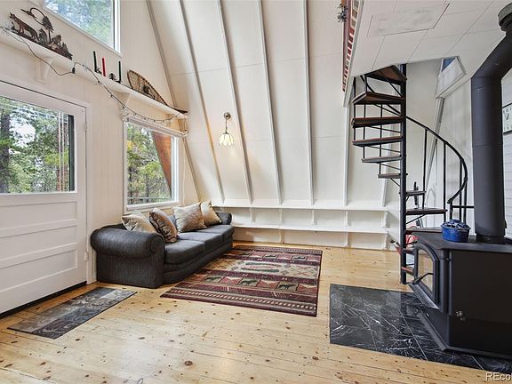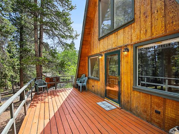 If you enjoy being in nature, this A-Frame in the coveted Snowline-Skydale neighborhood is a must see. The lot is situated on 1+ acre and backs to Roosevelt National Forest! Miles of trails and Colorado Creek are right out the back door. This property features 2 Bed, 1 Bath, eat in kitchen and 2 decks - one in front and back. Wood floors on main level, claw foot tub, sun room with saltillo tiles and floor to ceiling windows, and wood stoves in living room and sun room. Hike/bike on the surrounding national forest or fish/recreate/picnic on a private stocked lake. Located just 45 minutes from Boulder/Denver. A short drive to Golden Gate Canyon State Park and the Eldora Mountain Resort ski area. Set up a showing today!