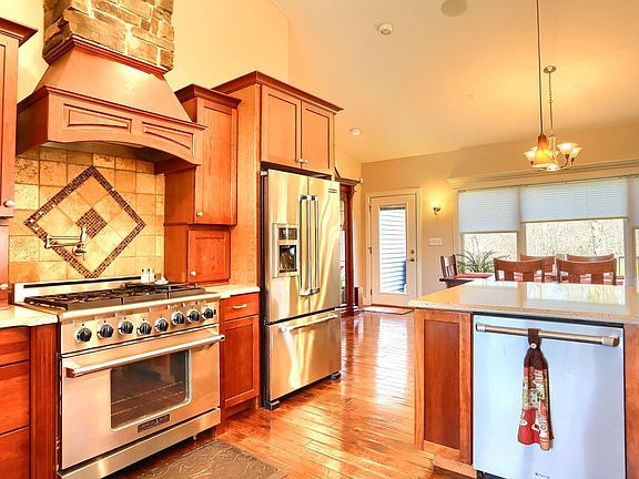 Country feel yet close to town in the highly desirable Shadow Lakes with access to lots of amenities on 1.09 acres. 4 bedroom, 3 bath home with 4,000 sq. ft. with 3,600 sq. ft. finished. The home has a large 3 car garage with extra room for storage and a pull down attic. This home is wired for security alarm, has stereo through out and central vac through out. The main floor has a lovely large kitchen with a walk in pantry and high end appliances and quartz countertops with soft close hardwood drawers. The kitchen flows into dining room and living room with a gas fireplace which open onto a rear deck and an enclosed screened in 3 seasons deck with vaulted ceiling and a wood burning fireplace allowing for magnificent country views including the winding creek at rear of property. The main living area, dining and kitchen has 3/4" hardwood floors, the home also boasts of custom molded hardwood trim. The master bedroom suite combines with a sitting area, with master bath including whirlpool tub and a walk in tiled shower and the master suite is accessible via the laundry area as well as living area. Geothermal, reverse osmosis, 2 water heaters, invisible dog fence and extra storage and walk in closets provide extra amenities. The full finished walk out basement has a 3rd gas fireplace with a wet bar and plenty of room for family and opens onto a patio with hot tub. The garage had a 5000 epoxy upgrade in 2021. This home is a 2 owner home with too many amenities to list and is a must see home.