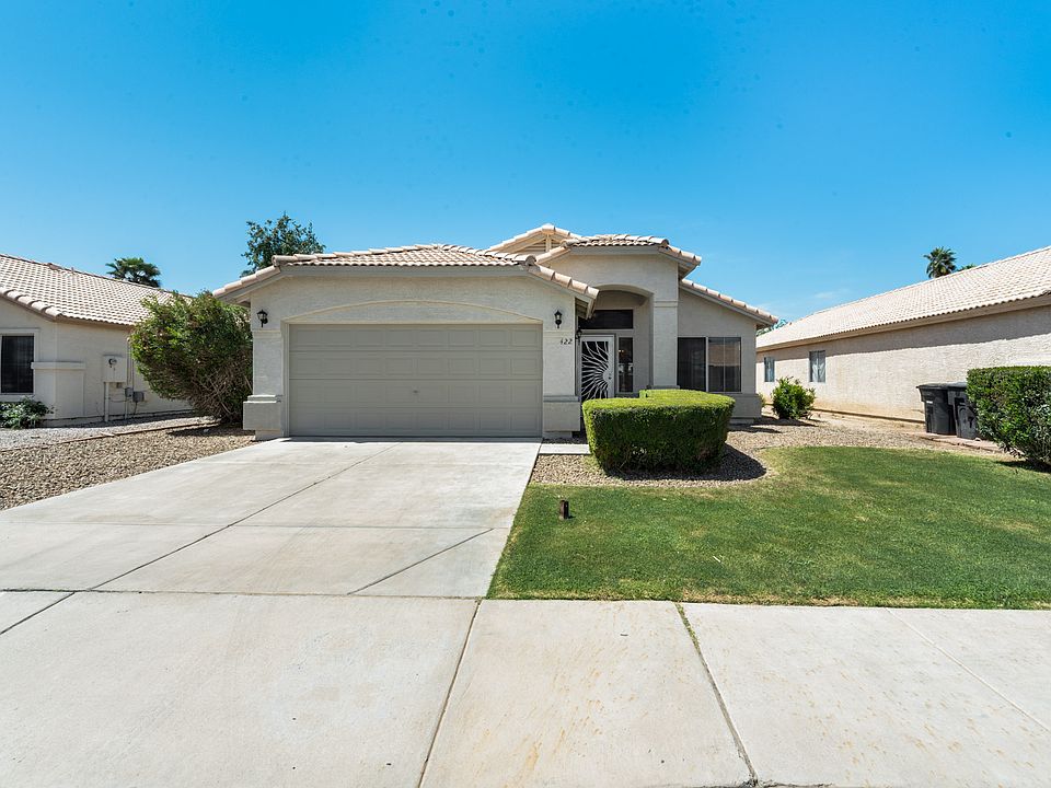 This cozy 3 bed, 2 bath home is waiting for you! The beautiful laminate and tile flooring are in just the right places. The formal living and dining room provide extra space to entertain your guests. Your kitchen has beautiful white cabinets, durable countertops, pendant lighting, and matching appliances. The master bedroom is complete with a full master bathroom. Step out back to relax under your covered patio or run around in the green lawn. Schedule your showing today!