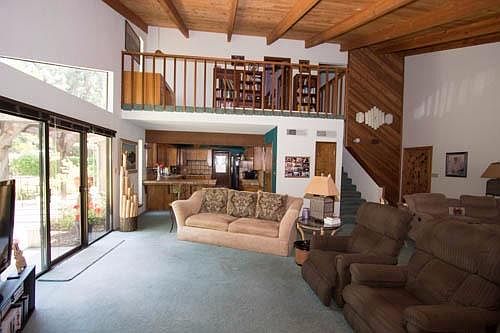 Experience the wonders of Wildwood plus all beautiful features this custom home has to offer. Vaulted wood beam ceilings throughout the entire home make this home spectacular. With the unique style & entertainment capability your guests won't want to leave. Oversized great room & kitchen overlooking the incredible backyard & pool is so inviting. A large Downstairs Master with walk-in plus the master bath every woman dreams of. Large shower with bench seat, jetted tub overlooking a beautiful backyard plus mirrors & built-ins around the vanities for amazing storage. Upstairs you'll find two guest rooms with bath off hallway & another master bedroom with master bath plus loft. 4 car carport that looks like a garage from front with automatic doors. Amazing Lush Park like backyard with pool & Creek side entertainment area. This includes River Rock built-in kitchen with sink, barbecue, fridge & deck on the running creek. The setting is one to dream of. Don't miss out viewing this property.