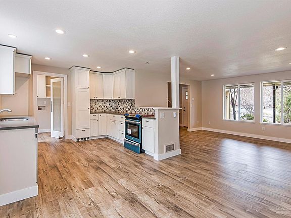 Spacious home has been completely remodeled in NE Bend. New updates include additional bedroom & office, gorgeous open kitchen with quartz countertops, backsplash, and new stainless appliances. LED lighting, hardwood laminate flooring, new carpet in bedrooms, large baseboards throughout & new wall heaters. All new interior & exterior doors with mirrored closet doors. Multiple storage sheds and raised garden beds the cute backyard and perfect views of Pilot Butte.