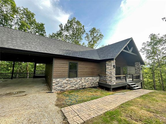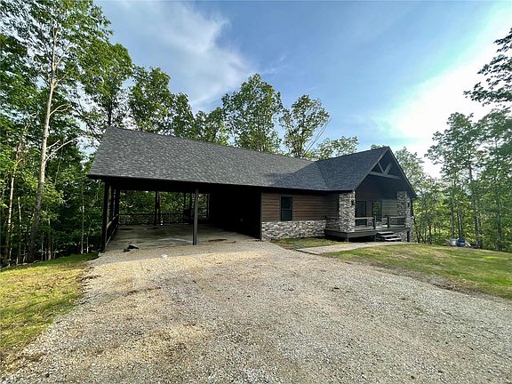 Absolutely stunning newly built cabin for sale. This home is a 5 bedroom, 3 bath. Vaulted living area with stone propane fireplace. Split bedroom layout. Master suite has large bathroom with large tile shower, jet tub, double vanity, walk in closet and linen closet. Kitchen has beautiful cabins with quartz counters and large walk in pantry. Laundry room on main level. Back deck is partially covered and has propane fireplace. 2 car carport. Downstairs has door at bottom of staircase that opens to rec room, 2 additional bedrooms and bathroom. Walk out basement with 30x22 garage in basement. This home sits on a 3 acre lot that sits next to Big Springs National Park which is part of Ozark Scenic Riverways. The boat dock is 2.5 miles from this driveway.