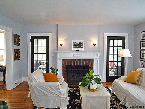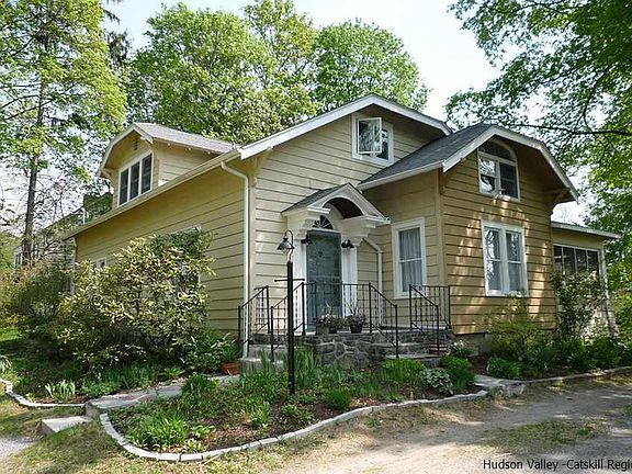 Walk to town from this lovingly maintained and elegantly appointed classic Dutch cape! This bright and sunny home has charm and detail galore, with original light fixtures, built-ins and cast-iron radiators. Enter the property though stately stone pillars and across a broad expanse of lawn. The foyer leads into a beautifully proportioned living room with brick fireplace. Two doors open onto the dreamy screened in porch. The dining room overlooks the landscaped grounds and leads into the sunny kitchen with newly refreshed wood cabinets and stainless appliances. Two bedrooms on the main floor share a bath, and a converted garage is a great workspace. The real surprise is upstairs, where the master suite beckons. The entire second floor has been converted into a private retreat, including a master bath with jetted tub, vaulted ceilings and skylight. The eaves have been enclosed for storage, and there are two huge walk in closets. You'll never want to leave. If you do, you can head outside to enjoy the gardens, or wander over to the Falcon for a night of jazz. From there you can even take a stroll down to the Hudson River. The location is perfect for weekend or full time living, minutes from the Marlboro Yacht Club, the Mid Hudson Bridge, Reese State Park, Walkway Over The Hudson, wineries and the Farm Trail.