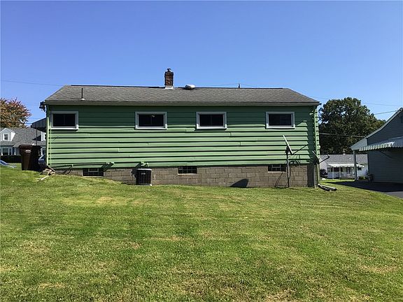 Cozy, compact and ready for a new family! 3-bedroom ranch with large living room and lots of natural light. The kitchen, complete with all appliances, features corner windows and a dining area. Hardwood floors in bedrooms. Full bath with tub/shower. Full basement with interior French drains and sump pump with battery backup. Toilet and separate shower, plus nice laundry area. Covered front porch with new concrete, and large, private back yard bordering full tree line.