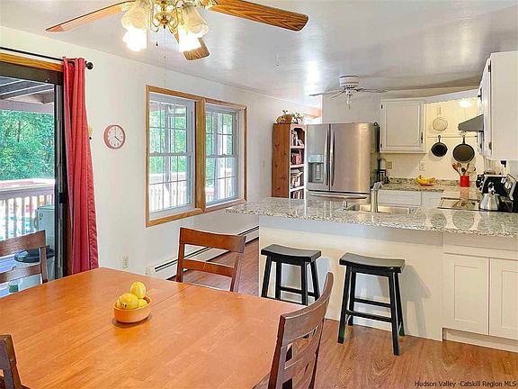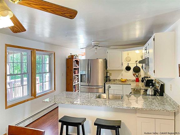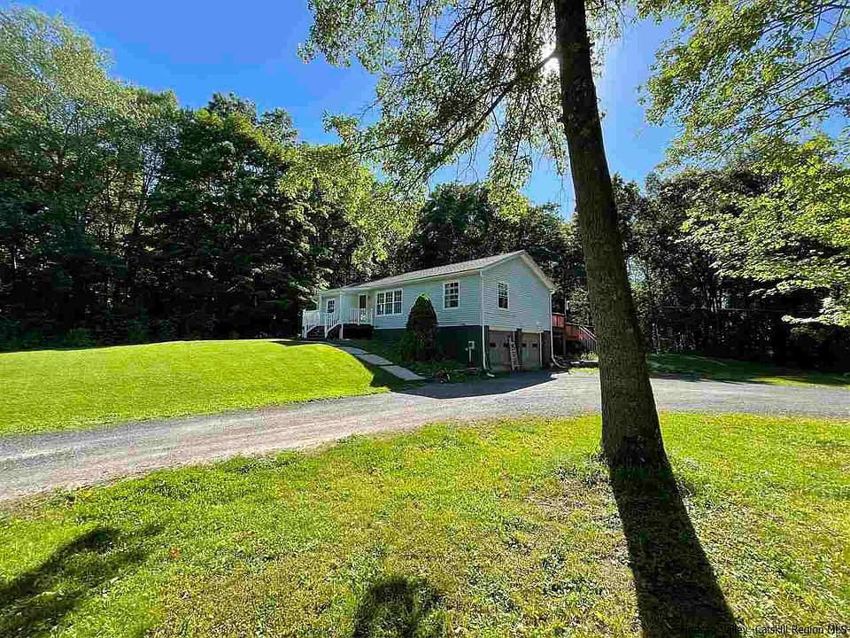Serene three-acre property offering private and peaceful living. You can say goodbye to the daily grind and stresses of modern life with this charming ranch home set on three glorious and private acres of land. The house is set back from the road at the end of a long driveway enhancing the sense of security and seclusion as you immerse yourself in the natural beauty of this breathtaking property. The layout has been cleverly crafted to embrace an open-concept design with generous and light-filled living zones that flow freely into one another. Wood trim on the windows and paneling on the walls bring a sense of warmth to the interior while those who love to cook will feel drawn to the open-concept kitchen and dining room. Here, ample counter space and wood cabinets are ready for the home chef along with a suite of quality appliances and a ceiling fan for added comfort. You will love to prepare delicious gourmet treats before moving outside to the covered entertaining deck and hosting guests as you admire the serene surrounds. There are three bedrooms and two full baths including the updated master bath that awaits the lucky new owners. The lower level is finished and offers additional living space. The interior doors have been replaced plus there's an updated roof, front porch, front door and a sparkling 27' above-ground pool that promises endless hours of summertime fun. Imagine spending your days working on the land or exploring the local region before returning home for a swim or refreshing afternoon drink on the poolside deck. The lower level leads to an oversized two-car garage and there's even a beautiful pond down by the entry to the property. There are many fruit bearing trees incl. peach, pear, apple, plum, and cherry. This property is a bird lover's paradise. Anyone with a passion for the outdoors will love the nearby rail trails, Walkway Over the Hudson, cycling, and hiking of the Gunks. Local wineries, breweries and apple orchards are all at your fingertips along with bustling farmers' markets, renowned restaurants and the Metro-North railroad and Trailways Bus. School, shops and services are only moments away ensuring absolute convenience for those lucky enough to secure this one-of-a-kind property.