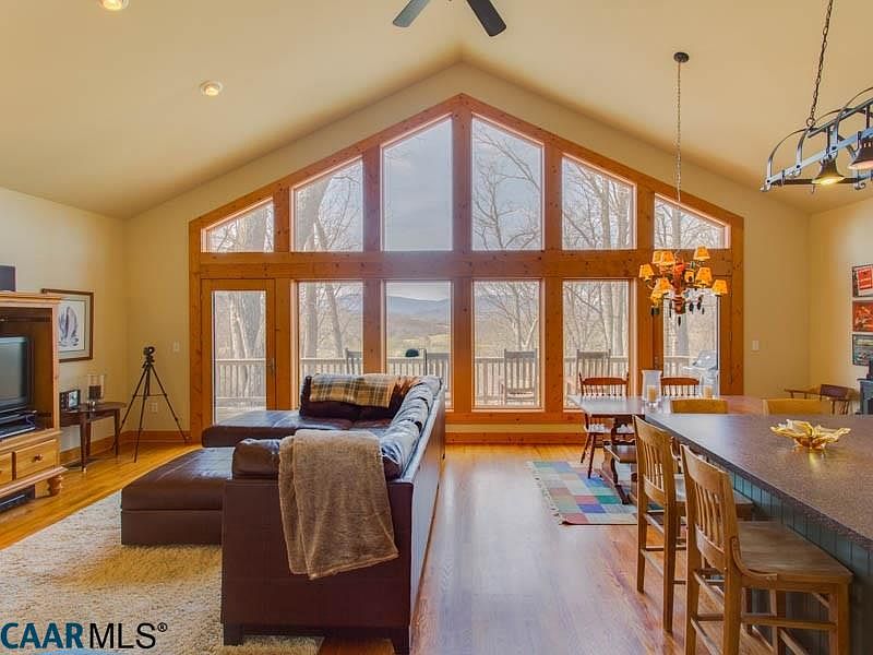 8 private acres with spectacular mountain views. Ideal weekend home or primary residence. Set amidst Nelson County's wineries and breweries. 1st floor master. Great room has a wall of windows. Lower level offer 2 bedrooms and bath as well as a recreation room. Extensive decking and lovely screened porch. Great condition.