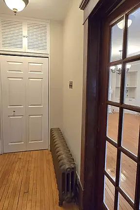Large, centrally located and clean main floor 2 bdrm apartment available November 1 or sooner. Freshly painted and newer windows. Hardwood floors. Foyer with front hall closet and French doors leads to very large living room/dining room (30' x 14) with decorative (non-functioning) fireplace. Both bedrooms are spacious - principal bedroom has large walk-in closet. Rent includes heat; tenant pays water/sewer (average $80/mnth) and electricity (average $90/mnth). The apartment is ideally suited for quiet, working professionals or mature students. First, last, references and credit check required.