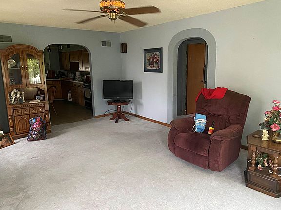 Cute home on a corner lot. 2 bedrooms, 1 and 3/4 baths, large eat-in kitchen, newer carpet. I has a 1 car attached garage, underground sprinklers, patio and a screened in porch. Full, unfinished basement.