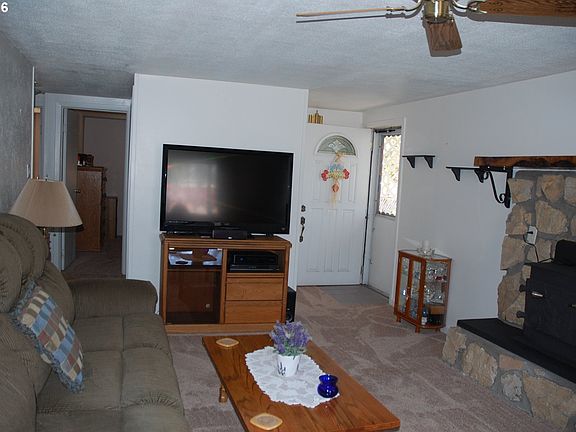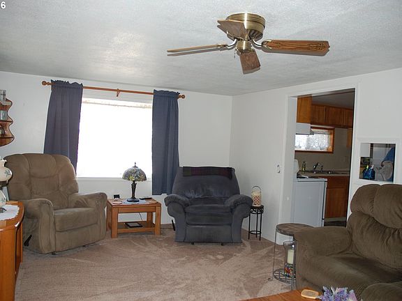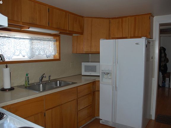 Very well maintained home, garage and RV parking, as well as yard with decking. Three bedrooms and 1 bathroom with cozy fireplace, new laminate flooring and new carpet, kitchen breakfast bar, separate laundry room, and propane heat.