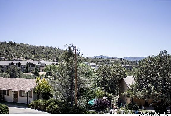 - View description: City, Granite Mountain, Juniper/Pinon, Mountain(s), National Forest, Thumb Butte