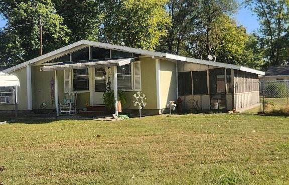 Looking for personality and character to your next house; this house is very similar to a modern ranch which were called a Drummond house. There is a lot of space in this cute house. Two living areas or the 2nd living area could be used as a 3rd bedroom. The house has a sunroom and a small fenced area for a pet. The appliances will remain in the house. The kitchen and living space have windows up high to let the natural light in. Just a very darling house. It is selling as is and cash or a conventional loan are preferred. The house has central heat and air. There is a car port in the front.