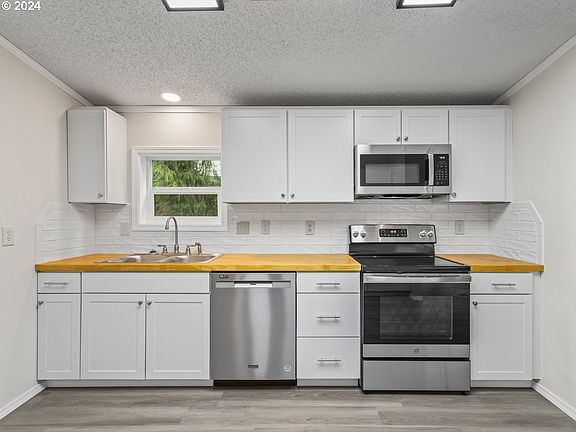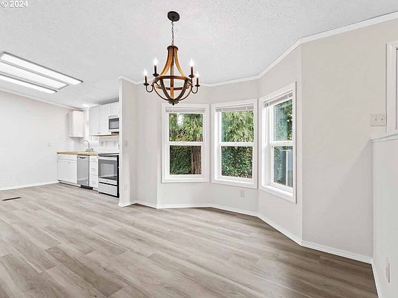 Don't miss out on this rare opportunity! Discover the charm of this beautifully remodeled 3-bedroom, 2-bathroom manufactured home priced under $400k.....Impeccably renovated, it comes with resilient vinyl plank flooring, soaring vaulted ceilings, a roomy primary suite featuring walk-in shower and closet, stylish guest bath, and modern kitchen complete with butcher block cabinets, skylight, and a suite of stainless steel appliances, including a plumbed fridge. New roof, furnace, water heater, and interior appliances and surfaces.....Nestled in Estacada's Lakeshore neighborhood, stroll to nearby walking paths with breathtaking river views. Take restful visits to river access points, Timber Park, or downtown for your favorite coffee or dining spots.....Perhaps you haven't considered a manufactured home before, but this one exceeds expectations and represents exceptional value in today's market. Schedule your personal tour!