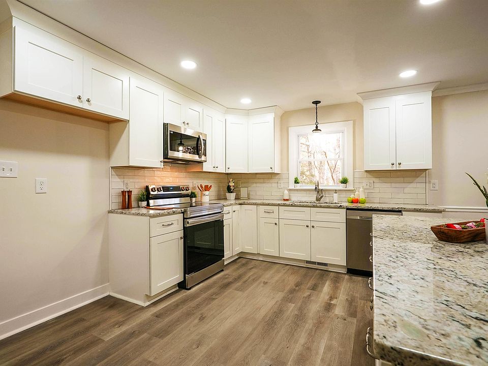 PRICE REDUCED! Large Corner lot in Lake Royale rests this fantastic FULLY RENOVATED home offering a spacious 3 bedrooms and 2 bathrooms. Impeccable design touches can be found throughout including a fully remodeled kitchen with BRAND NEW maple soft close cabinets, luxury flooring, stainless steel appliances, tile backsplash, and granite countertop with a focal-point island. Expansive spaces are at the heart of the home adjoining a living room with a brick fireplace. Every bedroom in the home is en-suite with plush carpet, highlighted by the Master with a spa-like bathroom including a NEW custom tiled flooring and walk-in shower. For outdoor enjoyment, the grounds of the home have ample space. New windows provide a beautiful LAKE VIEW of Lake Royale as well as mature landscaping that gives this elevated corner lot superb curb appeal. To top it off, there is a new roof, new paint throughout and the list goes on! The perfect balance of privacy and convenience, and topping it all off is a location within walking distance of private community Clubhouse, Golf Course, gym and more amenities!