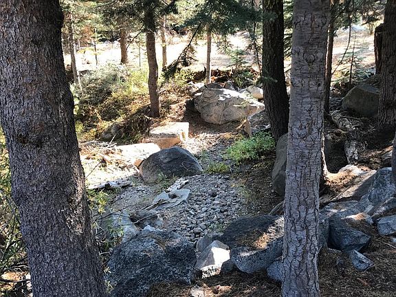 Large, clean, private, sunny parcel with seasonal stream and engineered septic system already installed. Lot extends from corner over the stream back to cul-de-sac. Gentle downslope from Salt Springs Trail. Lots of gorgeous granite boulders interspersed throughout the landscape.