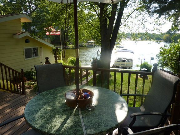 CHARMING YEAR-ROUND LAKE HOUSE. This beautiful home boasts an open floor plan w/ fabulous lake views from almost every room. Your pier & pontoon (INCLUDED) await you only 55 ft off the back deck. Home has new roof, windows, furnace, CA, driveway, sidewalks, garage door, & water heater in 1996. LL rec rm is finished & has ample storage. No worries here, a home warranty is included so you will have plenty of time to relax, SWIM (the BOTTOM IS SANDY), GREAT FISHING TOO!