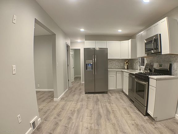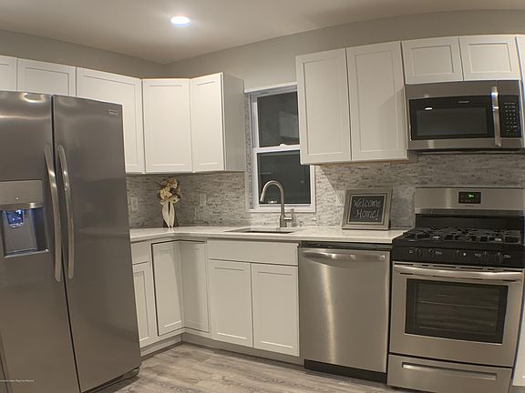 NEW, NEW, NEW & NEW!! This gorgeous ranch has been redone down to the studs. Home features a light and bright floorplan. Entry Foyer with double closet, Huge Living Room, Eat In Kitchen with Quartz Counters, SS Appliances and Sliding Glass doors leading to a huge deck and large backyard. Master bedroom has walk in closet, there are 2 additional nice sized bedrooms. Partially finished basement with half bath, laundry and lots of storage. New roof, siding, gutters, doors, windows, Tankless Hot Water Heater, A/C, plumbing, electric and new landscaping. New Lifeproof Vinyl Flooring throughout first floor. Bathroom and Basement flooring is wood-look ceramic tile. Google Nest Thermostat and Doorbell included! This home is sure to please, will not last!