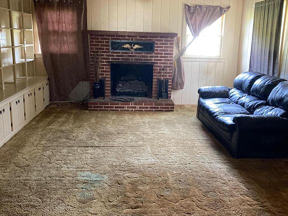 Yard is fenced on two sides large den with gas logs.