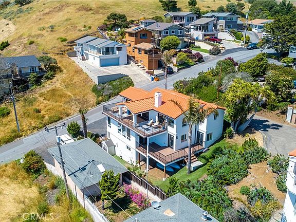 Enjoy Jaw dropping views from this Mediterranean style masterpiece perched on the Cayucos Hillside. Step into the home through a grand entrance and immediately take in views from Morro Rock to Estero Bay. The home boosts 2233 sqft and features an open floor plan on the first floor with updated kitchen, stainless steel appliances, dining area and build in fireplace. The first floor has two bedrooms and one and a half baths. Off the living room you will find a large completely rebuild deck with built in heaters, access to the backyard and panoramic ocean views. Head up to the top floor and you will find a large primary suite, walk in closet, bathroom with shower and soaking tub. The top floor features a large bonus room that could be used as a family room, home office or 4th bedroom. Step out onto the 650 sqft deck on the top floor and you will enjoy everything living on the coast has to offer. This partially covered patio makes the perfect indoor/outdoor living situation. Call your realtor today to make this masterpiece your new Home!