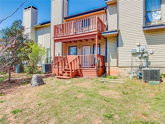 Woodcreek Townhome in Edmond! Move-in Ready! Featuring 3 large bedrooms with spacious closets, 2 bathrooms and 2 car detached garage ! Fireplace, tile flooring and plantation shutters in the main living area. Deck on upper level and deck on lower level overlooking the greenbelts! Neighborhood HOA fee covers the mowing in the front of the home and neighborhood association areas, pool access, and the basketball court....and you're conveniently just minutes from the University of Central Oklahoma and walking distance to Kickingbird Golf Course & Tennis Center, Movie Theatre, Shopping and great restaurants! HOA monthly fee is $71.00. Welcome Home.
