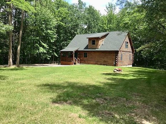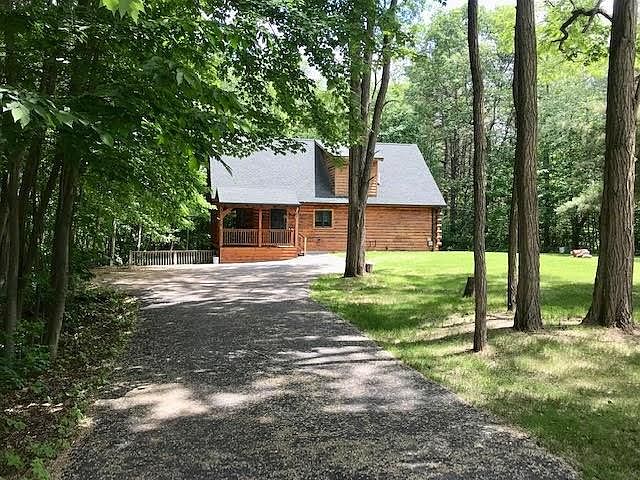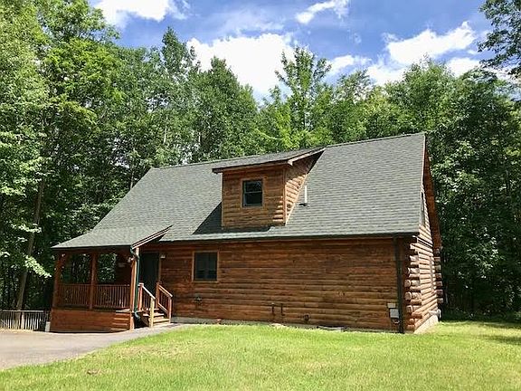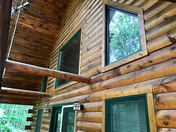 Lovely Wooded Country Setting. Spacious Adirondack Style Log Home nicely placed on 1.5 acre parcel surrounded by the sights & sounds of nature. Welcoming wrap-around porch overlooks babbling Dry Mill Brook. Home has beautiful wood accents to include wood flooring throughout & oversized windows allowing for an abundance of natural lighting. New dishwasher & sump pump. Spacious loft master bedroom with ensuite. Full bath & two nice-sized bedrooms on the main floor. Full partially finished walk-out basement has loads of potential for additional living space. The largest partially finished room could be utilized for a family/rec room. Additional unfinished room has closet which could be a 4th bedroom, office and/or craft room. Minutes from Hamlet of Peru amenities & access to I87. Additional 15.83 acre parcel available. Information available upon request. Wetlands Map downloaded under documents. Oil is used for hot water. Uninstalled electric hot water tank included in the sale.