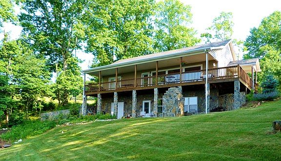 Beautiful custom home with a lovely Piedmont view. Top quality inside and out. 3 stone fireplaces (2 indoor gas log fireplaces and, 1 outdoor wood-burning fireplace). Gorgeous red oak floors throughout the main level. Great room: Pine tongue and groove cathedral ceiling, corner fireplace, living and dining areas, huge windows to maximize the view, kitchen with oak cabinets, newer Kitchenaid stainless appliances including gas stove, new granite and new glass tile backsplash.Main level master bedroom with 2 closets, ceiling fan and tile floor bath with dual sinks, jetted tub, shower,laundry closet with stacking washer/dryer and linen closet Guest room and bath on main level. Large main level mostly-covered deck spans the width of the home. Lower walk-out level has large family room with corner fireplace, additional bedroom/multipurpose room with glass block window, closet and full bath with large linen closet.