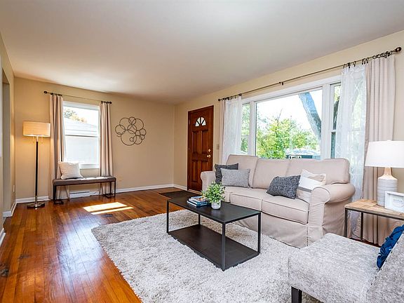 Solid, sparkling 50s ranch house with fenced-in yard, vintage hardwood floors and semi-finished lower level. Oversized 1.5 car garage, newer driveway, Andersen windows and electrical updates. New in 2020: Vented soffits, French drain/river rock walking path, fresh paint inside and out, oven, firepit, routings for ethernet/LAN, LED lights in LL and so much more. Kitchen pass-through allows for even more light from the picture window in the living room. Perennials and patio for outdoor enjoyment. Come tour!