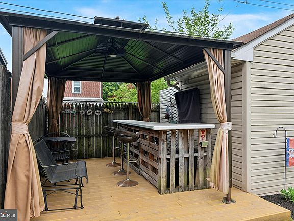 Welcome to this 3-story twin home Located in the Elmwood Park Zoo area featuring 5 bedrooms and 1.5 baths, plus a .25 bathroom area off finished area of basement. As you step inside, you'll be greeted by an enclosed front porch, currently utilized as an office, perfect for remote work or study. The first level boasts impressive 9-foot ceilings, large living and dining rooms adorned with stunning hardwood floors and elegant crown molding. The eat-in kitchen is showcased with maple wood cabinetry, ceramic tile flooring and backsplash, bead board accents, and an additional pantry area with a double door closet. A convenient powder room and an exit leading to the rear screened-in porch and large composite deck complete this level, offering a seamless flow to the backyard, perfect for outdoor entertaining. Make your way up the wooden staircase to the second level, where the main bedroom impresses with a wall of windows fitted with plantation shutters, two large closets with organizers, and extra storage above. The second bedroom, equally bright and spacious, also has a generous closet. Another bedroom, a hall bath with ceramic tile, pedestal sink, bead board, tub/shower combination, and a double hall linen closet are also found on this floor. The third level provides a huge bedroom with luxury vinyl flooring, two large closets, and built-in cabinets. The fifth bedroom, currently set up as an exercise room, offers ample space and a large closet. The basement level is designed for recreation and practicality, featuring a family room and bar area combo with ceramic tile flooring and carpet. An additional unfinished section houses the laundry, utility sink, a third toilet area, ample storage, and utilities. Outside, the fenced yard is a true oasis with a composite deck, garden areas, a shed, a bar area with TV inside the gazebo. Enjoy the vibrant atmosphere, with the ability to watch the 4th of July fireworks from your backyard. This home is within walking distance to the Elmwood Park Zoo, baseball fields, bocce courts, and concerts at the Elmwood Park Band Shell. With abundant storage, high baseboards, and most rooms equipped with ceiling fans/lights, this home combines charm, functionality, and convenience in a highly sought-after location. You don't see such a spacious home too often. Don't miss the opportunity to make this your home!
