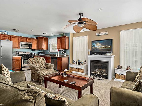 This top floor condo is in great condition and only 7 years old. Sit back and enjoy the sunsets and bay views from your front deck. The open floor plan is perfect for entertaining and the living room has a gas fireplace for those chilly winter nights. The kitchen has ceramic tile floor, lot of counter space, stainless appliances, a separate dining area plus a large pantry closet. Down the hallway you will find the big laundry closet, heater closet, 1 full bath and the bedrooms. The (2) guest bedrooms are generous and the Master bedroom has a full bath and a private rear deck overlooking Maxwell Field. On the 1st level is a common storage area, 1 car garage, private storage closet and rear fenced in yard. The concrete driveway allows for off street parking for 3 cars. This is a great opportunity to own a spacious, just like new condo for under $200,000. This unit has never been rented and furnishings are negotiable. Buy now and get ready for summer fun at the Shore!