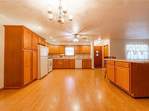 Looking to down size or a great 1st home this is it! One level convenient living with extra living area downstairs. This exceptionally well maintained ranch home is located close to the school, community park and local restaurants. The modern kitchen with all appliances is open to the dining and living room combo with movable island. 2 generously sized bedrooms with tons of storage compliment the main floor. The lower level has a bonus room with potential for additional sleeping space, another full bath and laundry with walk out access to the 2 car integral garage with black top driveway. Enjoy coffee on the covered front porch. This home is turn key and well cared for, pack your bags!