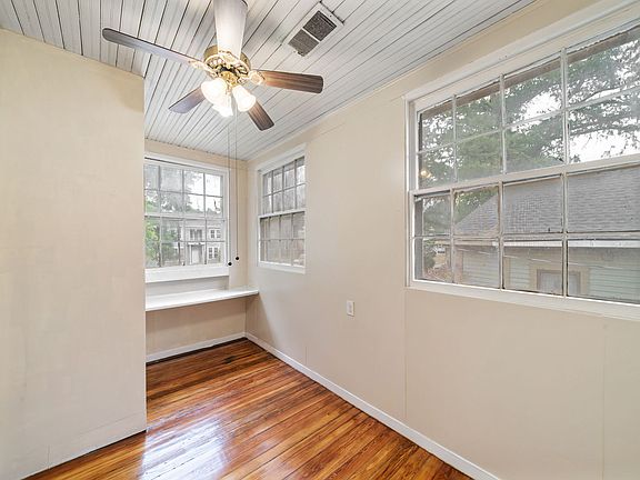 Mock fireplaceWork-study officeSeparate dining roomCeiling fansGorgeous original wood floorsEat-in kitchenWood butcher block counters