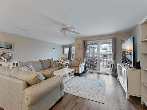 Don't miss out on this exceptional 1,600 square-foot, 3-bedroom, 2-bath condo in a prime location! This beautiful first-floor corner unit offers a perfect blend of style and comfort. The brand new carpet in the entrance hallway leads you to the bright and airy unit. The open concept living area opens to your private covered deck, ideal for enjoying morning coffee or evening drinks. The floor plan seamlessly connects the living room, kitchen, dining area, and a cozy space perfect for a sitting or reading nook. The updated kitchen features granite countertops, painted cabinets, a breakfast bar, and a full suite of appliances. The primary bedroom boasts a large walk-in closet and a spacious bath with a walk-in shower. The two guest bedrooms are generously sized and share a full hall bath. This unit also includes a laundry room, complete with a washer, dryer, and storage shelf. The lower level of the building features a large garage area, perfect for parking or for use as a gathering space. Conveniently located on the island, this condo is located near popular attractions like Morey’s Piers and Beachfront Water Park, Wildwood Dog Park & Beach, Wildwoods Convention Center, shopping, restaurants, and more!