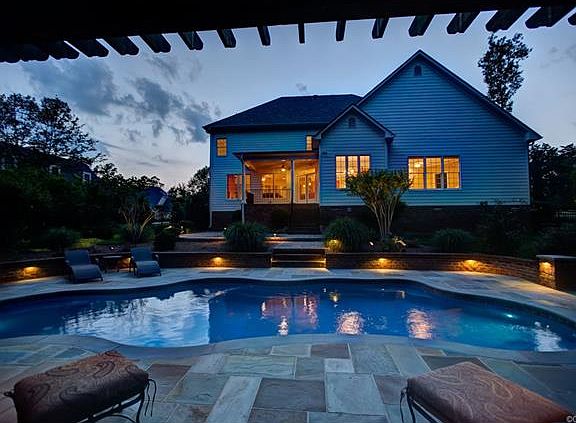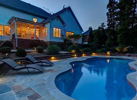 Unsurpassed outdoor living with covered porch, heated, salt pool, separate spa and stone fireplace anchoring a cozy sitting area, all nestled in a lush garden with new landscaping, expanded irrigation and exterior lighting. Gorgeous open and inviting interiors with custom upgrades and finishes perfect for family living. ChefâEUR(tm)s kitchen with granite island, new lighting, stainless appliances and breakfast room. Family room with gas fireplace and new built-ins with media cabinet, formal dining room with bay window and study with French doors. Lovely entrance foyer with new French doors. First floor owner's suite with new carpet and luxury bath plus two walk-in closets. Three second floor bedrooms plus media & recreation room or fifth bedroom with closet, hobby room and loft with bookcases and window seat. Tons of storage in the walk-up attic and 3-car garage. New carpet, all new paint, and refinished hardwood floors in 2015 create a home in move in condition! Kayak Kinloch Lake with great fishing! Popular area for biking, walking and golfing at Kinloch or Hermitage CC. Immediate possession!