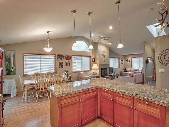 This beautiful 3 bedroom, 2 bath, creek side rambler sits on nearly a half acre. The open floor plan includes a huge kitchen and eating bar with granite tile counters, vaulted ceilings, skylights, central vacuum system, gas fireplace, large master suite, and laundry room just off the large two car garage. The nicely landscaped back yard boasts nearly 125 feet of creek side waterfront and mature trees, offering trout fishing right from your back yard.