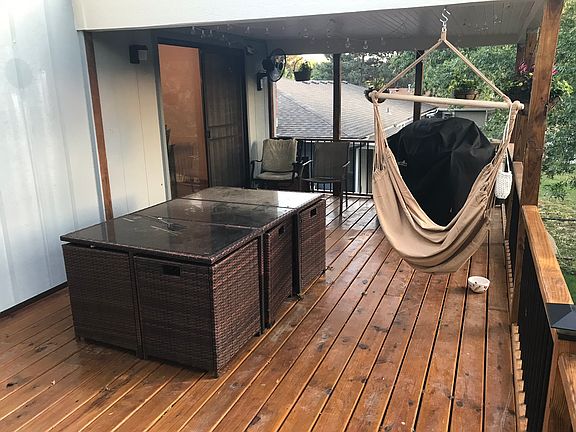 Input for comp purposes only. Great location only 1 block to Meadowlark Elementary. Large covered deck off dining room with gas grill and easy access to yard. Newer carpet up and down, appliances included. 2 closets in master bedroom. Manual in ground sprinklers for easy care lawn. Daylight windows down below for lots of natural light.