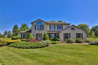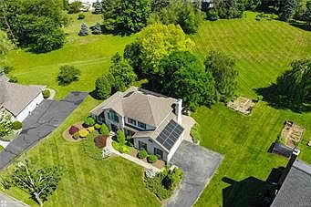 LOCATION IS PARAMOUNT! PRIDE OF OWNERSHIP IS IMPERATIVE! You will find it all in this Exquisite Home sitting on a gorgeous acre filled with a Variety of Trees, Shrubs and Fruit Vine with a picturesque Foot Bridge. Features Include:Open foyer with Crown Molding,1st Fl. Office with custom Wall Bookcase, Hardwood & Porcelain Tile Fls.Tray Ceilings in LR. & DR., a Gourmet Kitchen with Center Island,Granite,Quality Cabinetry,Breakfast Area.open to the Family room with Fireplace,added wood insert & new chimney liner,3.5 Baths, Master BR is spacious, Master Ensuite is a Complete 50K Custom Design,1st Fl laundry,LL Playroom, Bath, Optional Room & Storage. 2017 New High Efficiency heat Pump/ Central Air, Dehumidifier, 2010 Roof with Solar Panels added, 850 sq. ft. Paver Patio.This is an Amazing Offering. LIVING AT ITS BEST!*There is a Brochure at the house with complete details and dates etc.Attached on line is information regarding the solar panels & Ensuite.Find Floor plans in Document Icon