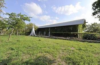 Unique "green" construction in Hill Country, 1,200 Bales of rice straw for insulation creating 2ft thick walls framed in light-gauge steel, Galvalume Metal Roof, 45,000 Gallon cistern suppling water to home, stained concrete floors, 3 lrg Master Suites w/in Suite luxury baths, Windows all over to let in natural light & hill country beauty, True commer grade Wolf Kitchen range & sub-zero fridge, 2 Rumford style fireplaces(in&out),safe room in lower bed closet,1,000 sf outdoor living space on 2.96 acres