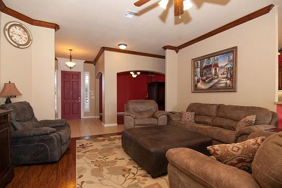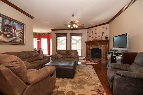 Beautiful custom built home in Carrington Place! This home features formal dining w/ dbl crown, huge LR w/stone accented FP, + crown molding, split floorplan w/Jack 'n Jill bath, Master Ste features an awesome claw-footed tub, large shower, huge walk in closet. Also has study/bedroom, plantation shutters & huge backyard.