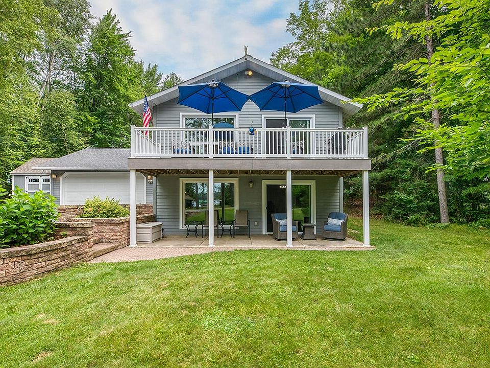 Welcome to this meticulously maintained home on the Eagle River Chain. Imagine waking up and enjoying your morning coffee on a spacious deck overlooking the water—perhaps even catching a glimpse of a passing pirate ship. In the evenings, you can sit out back around the beautifully landscaped firepit, watching the deer play. This home features three spacious bedrooms and two bathrooms. The large lakeside windows flood the space with natural light and offer picturesque lake views. There are multiple fireplaces to keep you warm and cozy on those snowy nights. Outside, the expansive yard offers endless possibilities for outdoor activities, from boating and fishing to simply relaxing by the water in the beautiful Leisure City Cedar Gazebo w/retractable screens. While the home and attached oversized garage itself includes numerous storage options, the newly added shed provides even more space for all your storage needs. Call now to set up your personal showing.