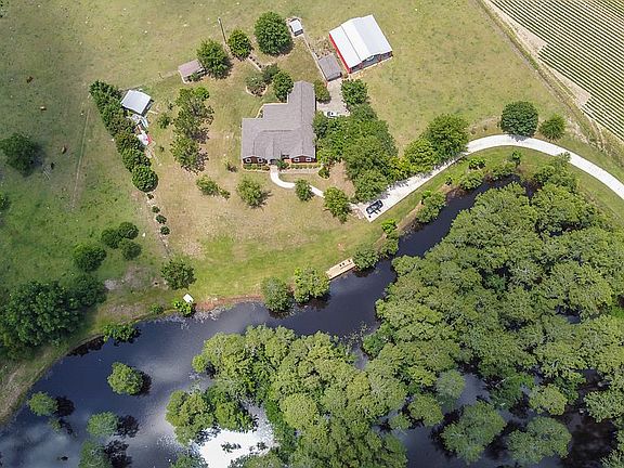 Amazing custom built home on 5 acres which includes approx. half of a 7 acre fully stocked beautiful cypress pond, 10'x24' Dock, Full concrete driveway, Metal barn 52'x48' which can house your RV! Well water&metal well house, a BBQ hut with storage, and another detached metal storage building. Inside features custom granite kitchen with big island, Private office and big sun-room. Formal dining room, Hardwood floors, CUSTOM MASTER BATH SUITE!!! Vaulted ceilings, Home Gym, 2 car garage and HOME WTY.