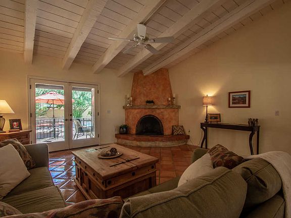 Wonderful Territorial Style home in Gated Pontatoc Canyon Estates! Right from the start, the Courtyard entry, invites you inside to Southwest comfort and charm! Vaulted, beamed ceiling and beehive fireplace in Living Room, lovely arched doorways to Kitchen and Den/Dining Room and gorgeous Saltillo tile floors in all main living areas! Nice mountain view from front of home and Den/Dining Room. Spacious bedrooms, both baths have updating. Sparkling swimming pool, covered patio, mature landscape including citrus tree and plenty of extended seating areas in the backyard. Great pride of ownership in this neighborhood and excellent location in the Catalina Foothills just minutes to the best shopping and recreation in Tucson and located in the #1 rated Catalina Foothills School District.