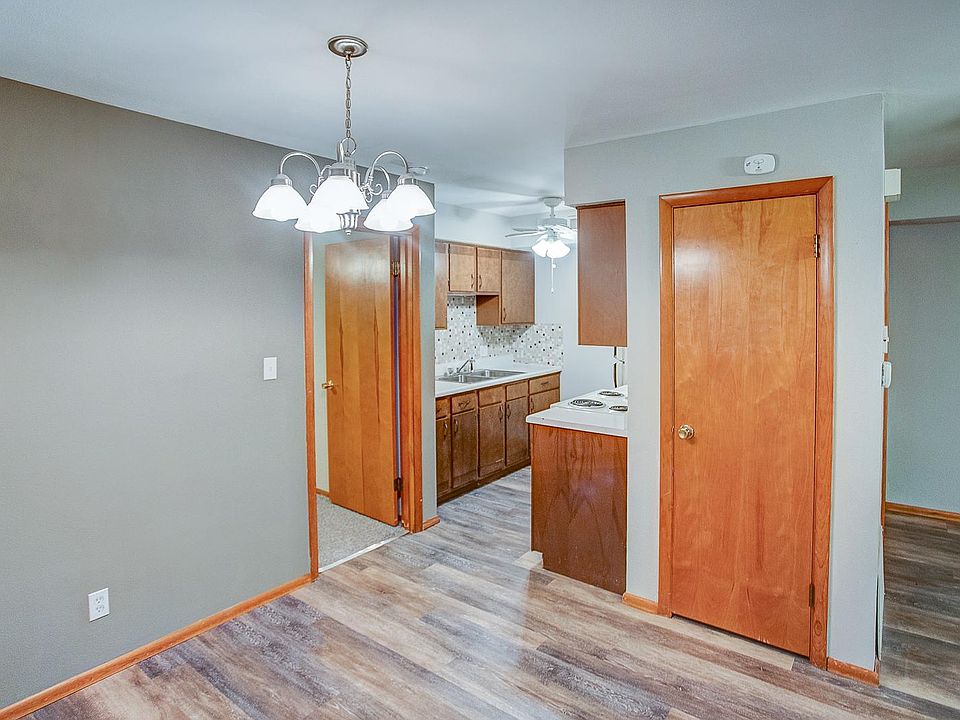 1 Bedroom 1 Bath - Erna Apartments - 4220 Erna Belleville Welcome to this updated, 650 square foot, 1 bedroom, 1 bath apartment home tucked away in a quiet residential neighborhood. We are just 20 minutes from Downtown St. Louis, close to Scott Air Force Base, great shopping, dining, nightlife entertainment, and the bustling downtown area of Belleville. Enjoy the plank flooring and new carpet throughout plus on site laundry and an equipped kitchen with range, refrigerator, garbage disposal and ample storage. We are owner managed, with professional maintenance and only 13 units. Rent includes trash. Security deposit $550, admin fee $250 and first month rent due at move-in. Owner covers trash.