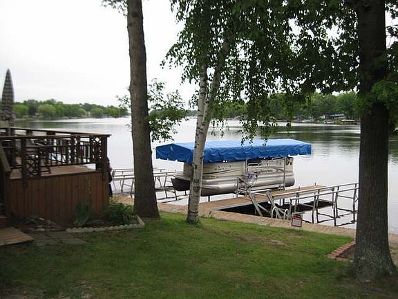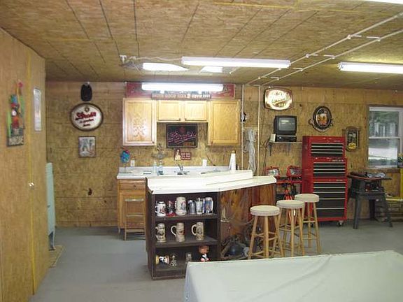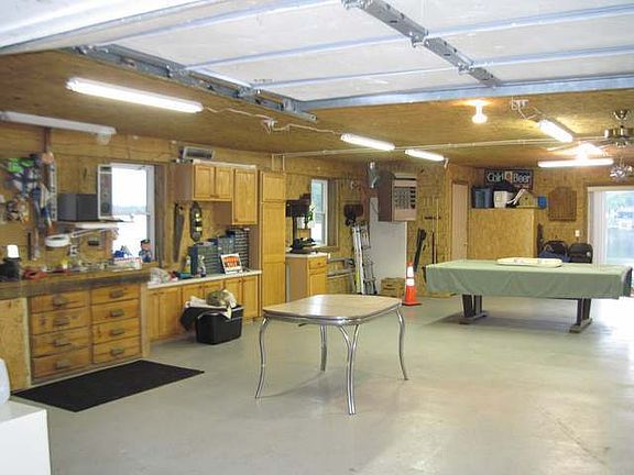 Waterfront 32x40 X-tra nice insulated and heated Pole Barn approx 4 years old. Bar and Kitchen area, Bathroom, storage cabinets and work benches. The upper level is a 16x40 great open space. Slider to 14x20 waterside deck, landscaped and nice steel seawall, boardwalk with 2 docks included. A 12x26 lean to for parking your boat or water toys, Natural gas well and sewer, approved for turning into residential if desired.